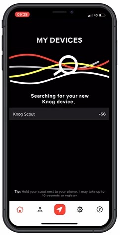 1. Scout を起動するには、電話が非常に近い範囲にあり、Knog アプリがアクティブであることを確認します。