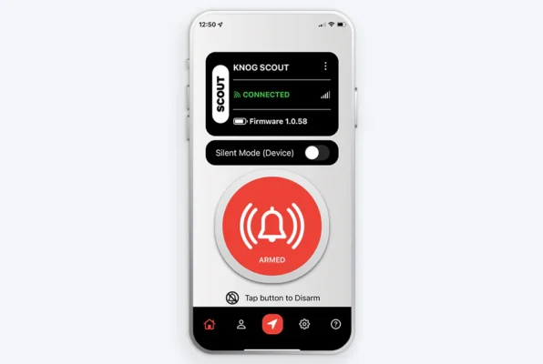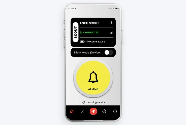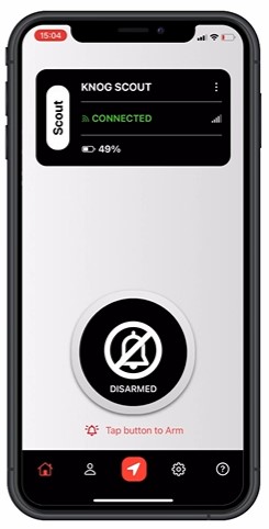 1. Scout を警戒モードを解除するには、電話が非常に近い範囲にあり、Knog アプリが起動していることを確認します。