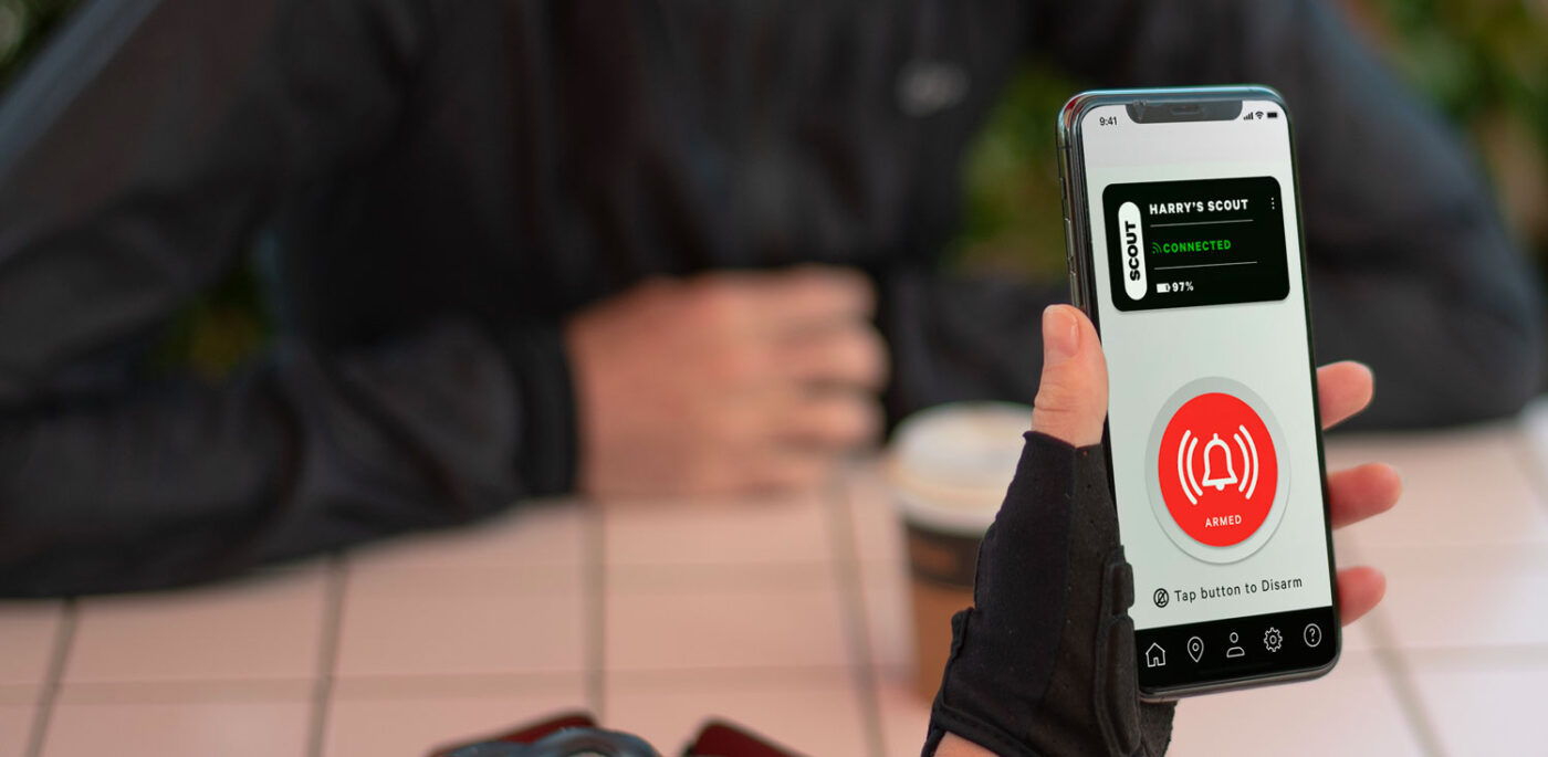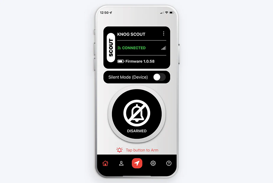 警戒モードを解除するには、スカウトが Bluetooth の範囲内にあることを確認し、画面上のベルのアイコンを選択します。