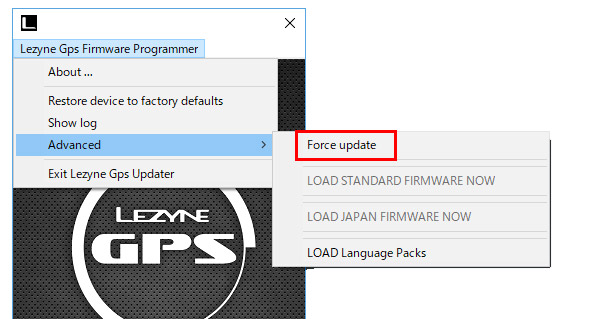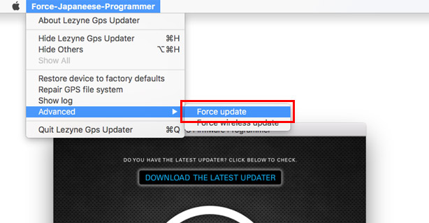 Advanced→Force Updateを選択、選択後「OK」にてフォースアップデートがスタートします