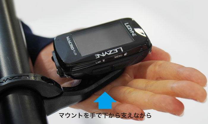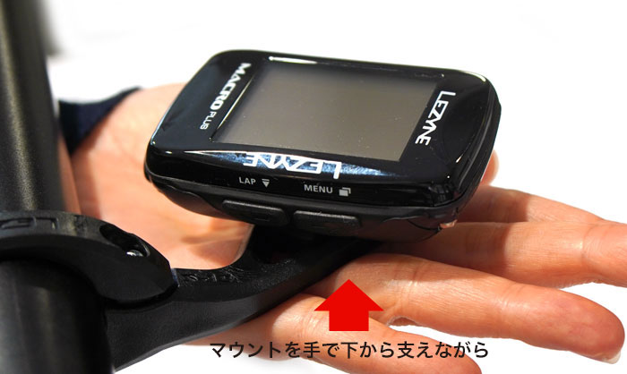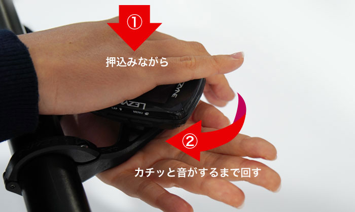 LEZYNE GPSマウントは、しっかり押し込んで回して脱着する固定方法となっています。
