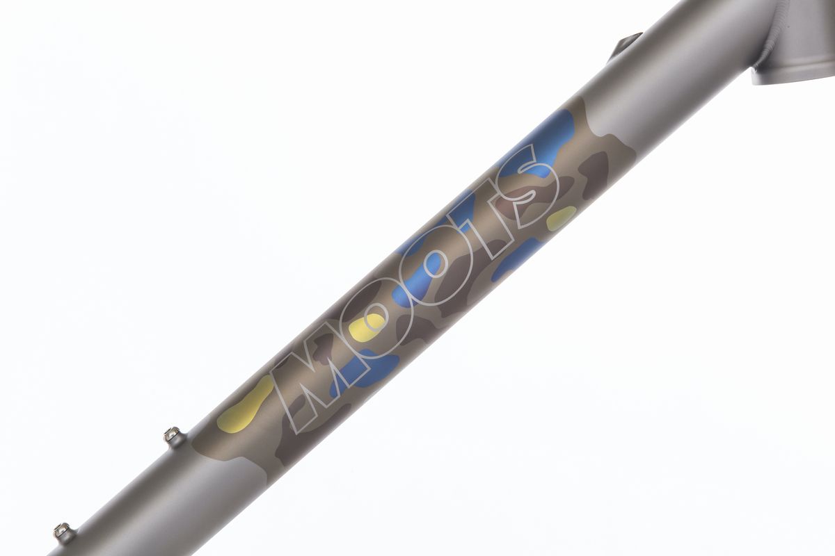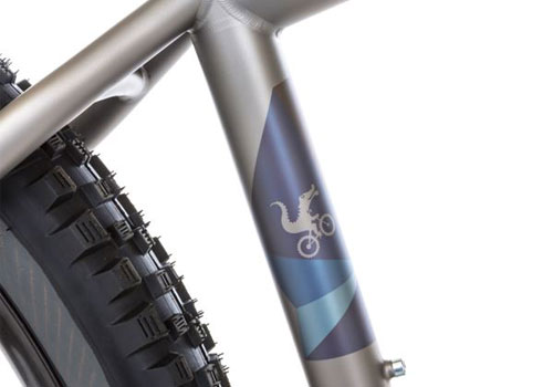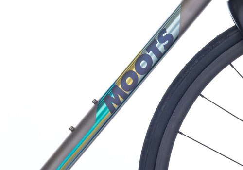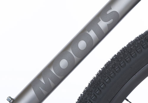 ロゴは、トップチューブにモデル名、ダウンチューブMOOTS、シートチューブの前面にウィリーゲーターをデザイン。一部のモデルには、チェーンステイにMootsロゴが付いてきます。