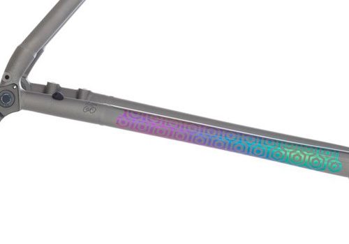 レトロをテーマにしたカラーパレットをキラリと光る砂地のフレーム表面にアノダイズドしてポップに仕上げ、素晴らしいコントラストを表現、このデザインは誰もがきっと頭をひねることになるでしょう!