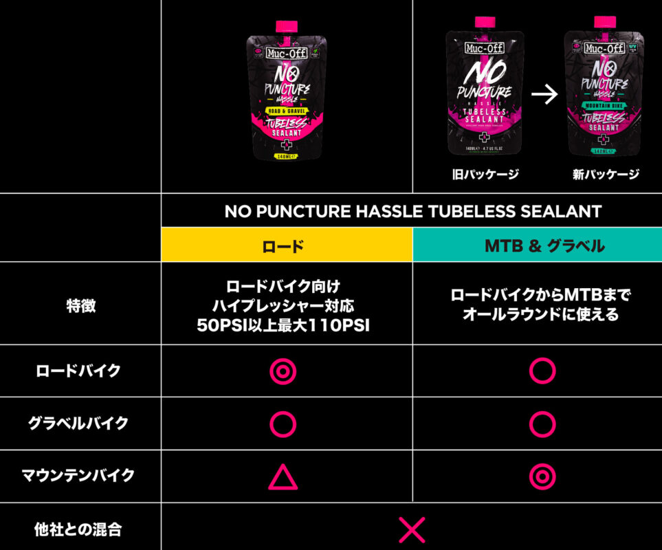 これまでのNO PUNCTURE HASSLE TUBELESS SEALANTも高性能で、最大6mmの穴を塞ぐことのできる最高のシーラントには変わりありません。