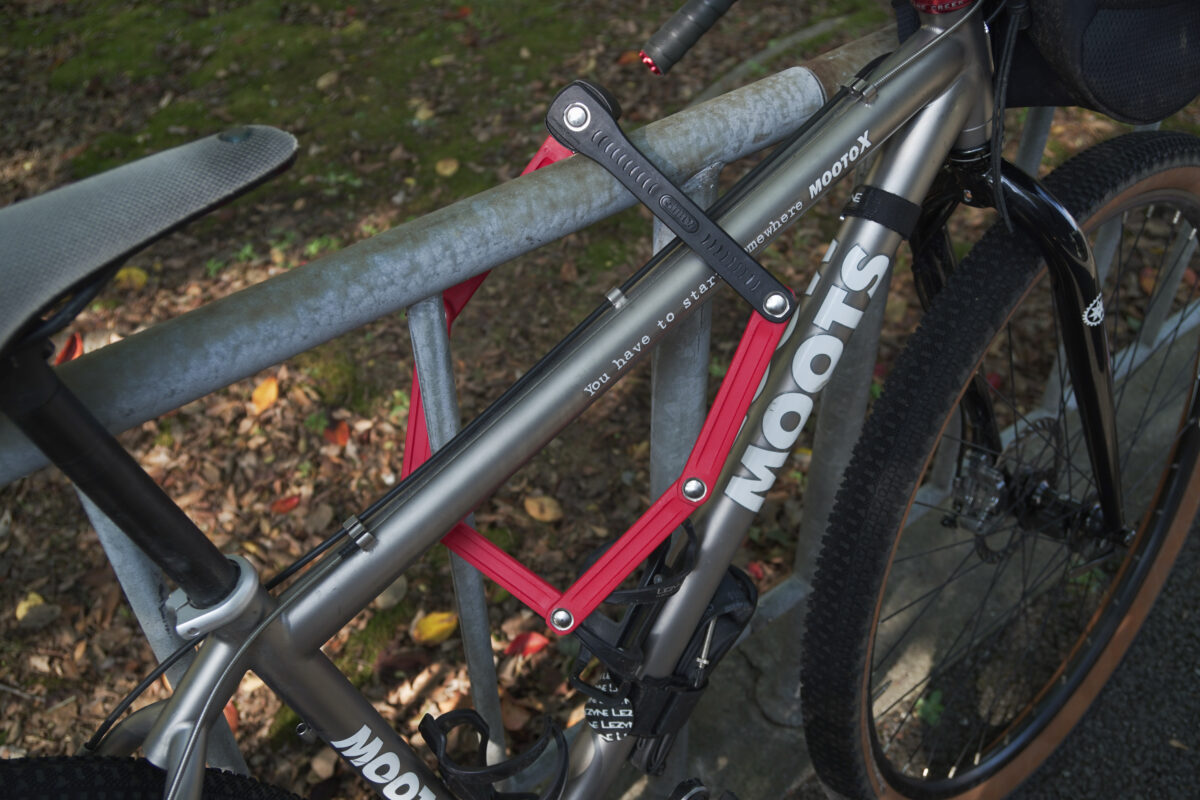 ワンタッチマウントが付属でより使いやすい。ボトルケージ取り付けネジやバンドでフレームに固定して、ロックを持ち運び可能です。