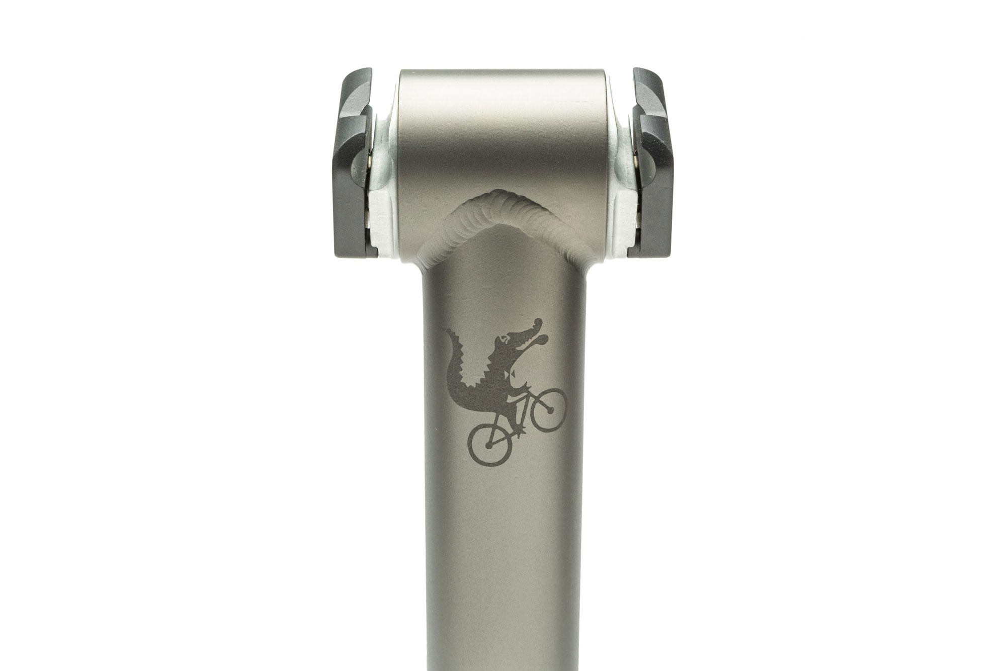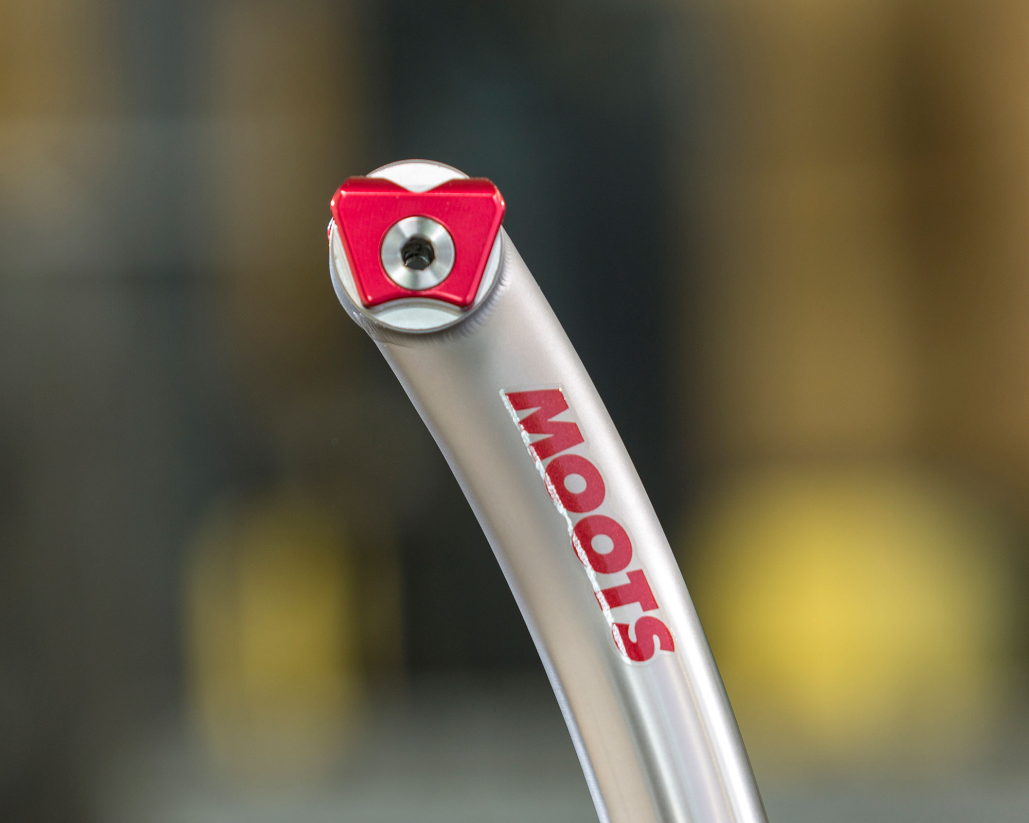 サドルのアングル調整と前後調整を別々に行うことが可能なチタンシートピラー。