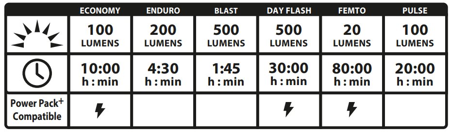 | ■ 最長ランタイム: 36時間(FEMTOモード・20ルーメン) |