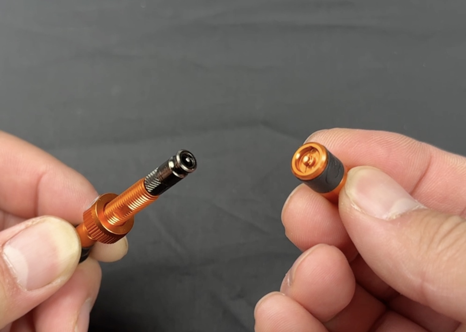 キャップ上部に空気抜き用のピンを内蔵。ライド前後の空気圧調整が手早く行えます。
