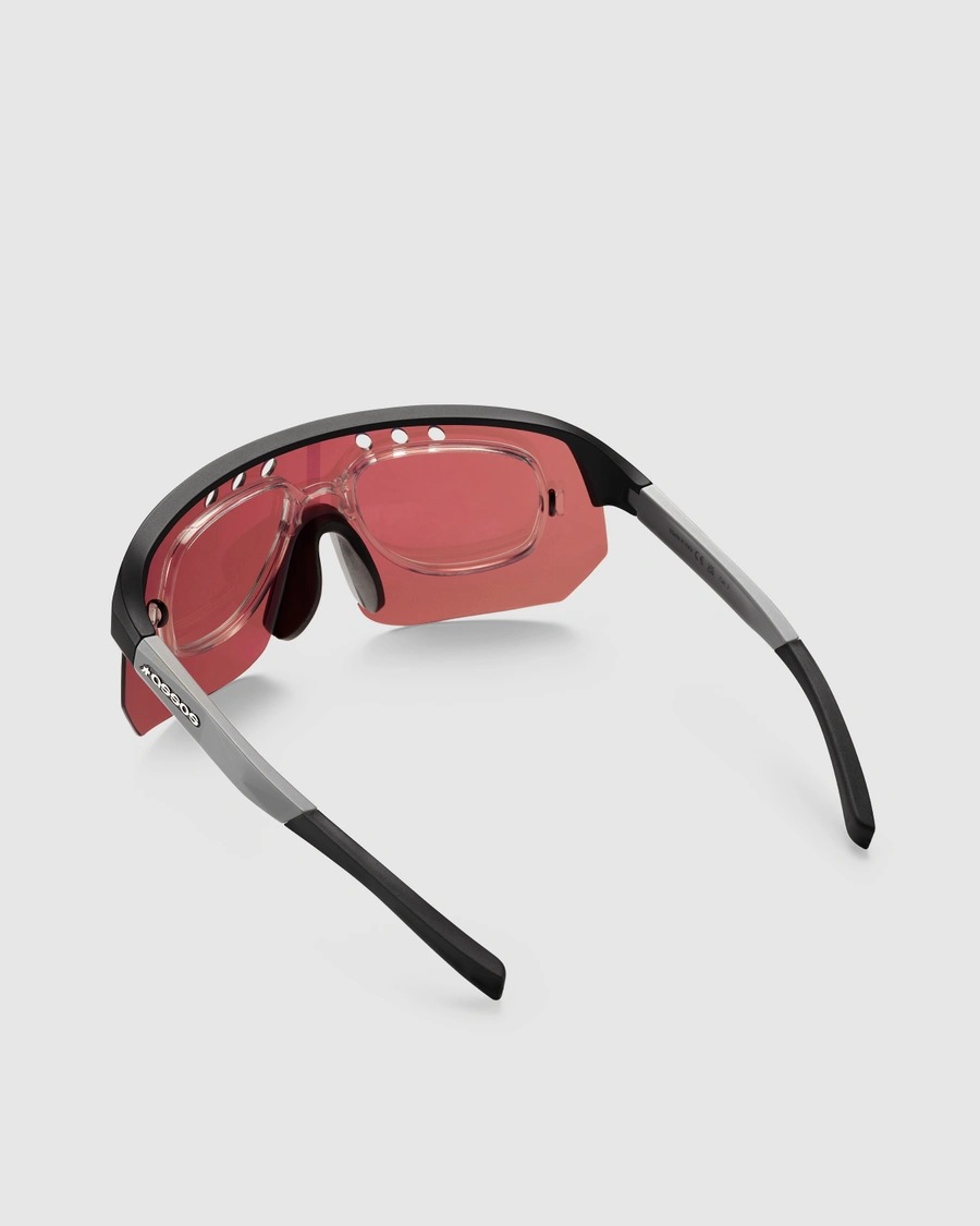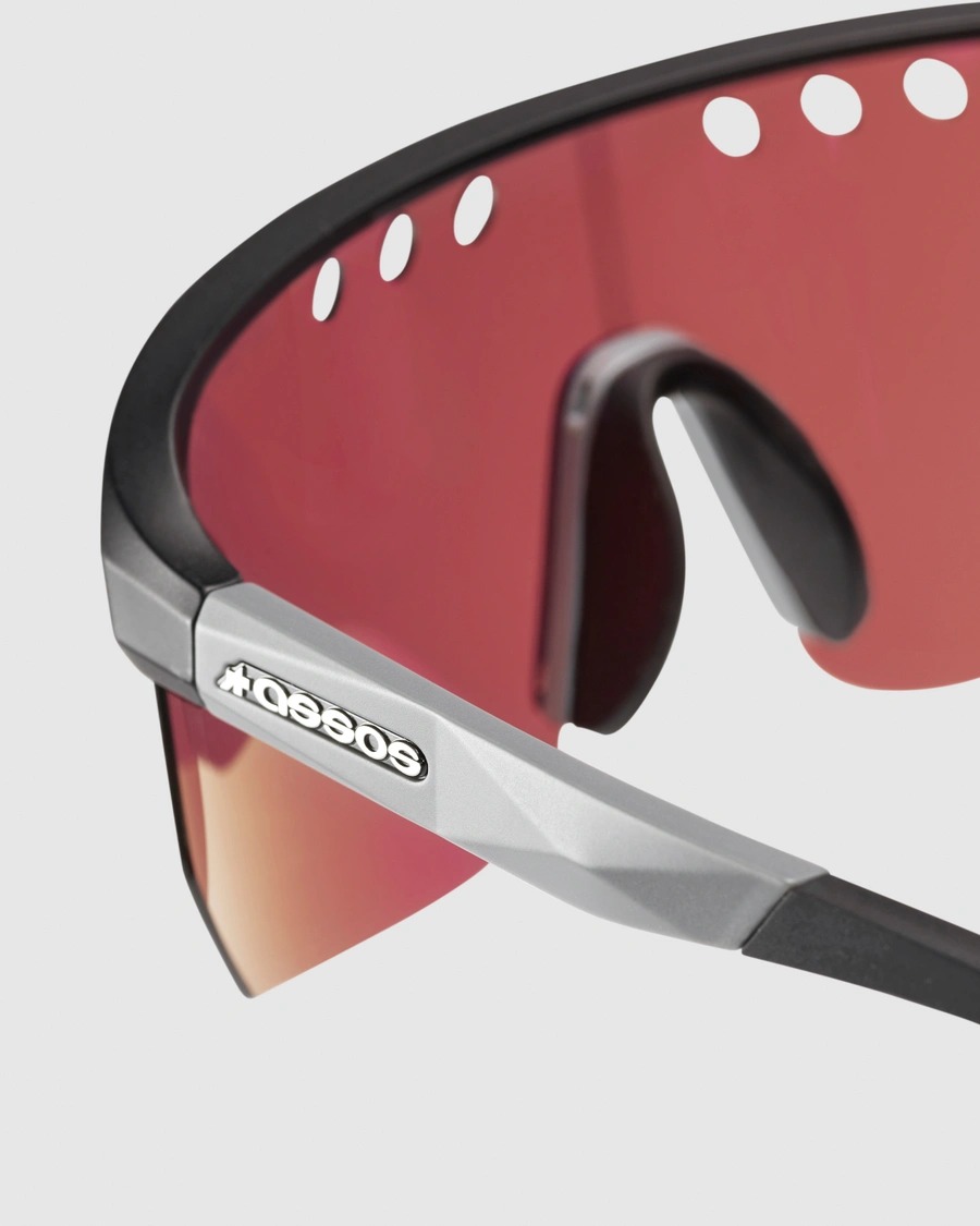 ASSOSロゴの形をモチーフにしたkraterCoolerテクノロジーは、眉間の冷却と曇り止めのための通気性を向上させます。フレームは調整可能なノーズパッドとテンプル構造によって快適に固定され、レンズはロード、トレイル、グラベルライディングなどあらゆるライディングスタイルに最適です。