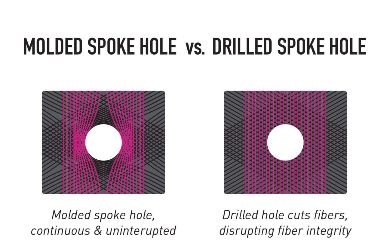 ドリルを使用せずにニップルホールを作成され、カーボン繊維が切断されません。そのためリムを薄く製作することが可能となります。