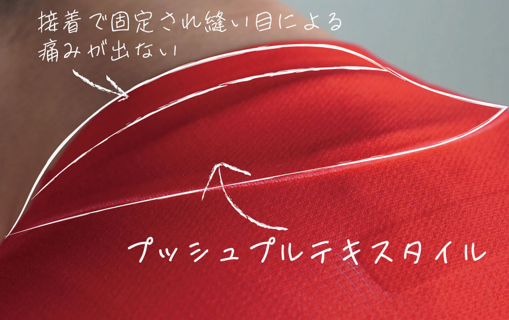 襟は縫い合わせられておらず接着されており、縫い目による痛みが起きないようになっています!