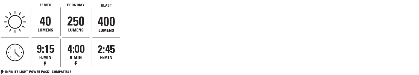 斬新な光学設計、オプションのGoProマウント、そしてInfinite Light Power Pack+との互換性により、汎用性と優れたパフォーマンスを実現します。