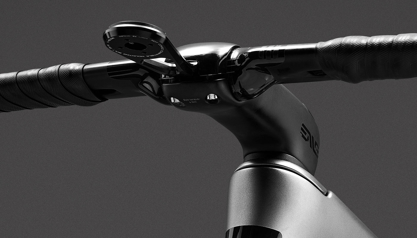 ステム先端には、角度調整&GOPROマウント搭載のコンピューターマウントが取り付け可能(別売)。