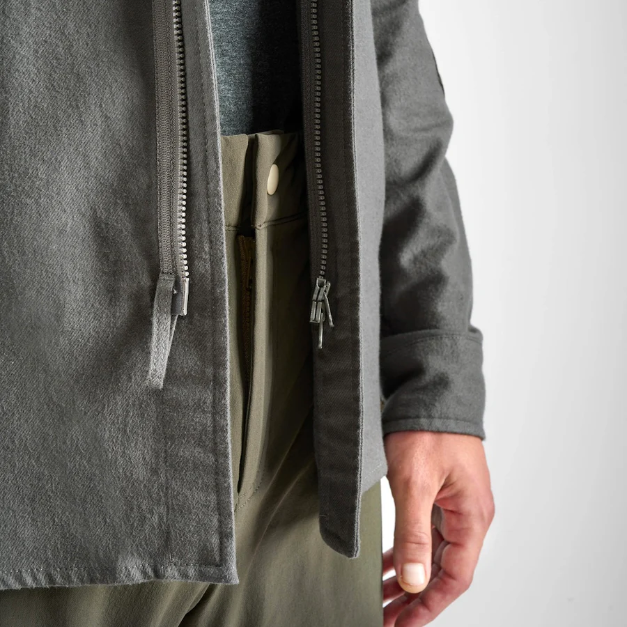 柔らかなコットン素材と、摩耗に強いリップストップパネルを組み合わせることで、快適さと耐久性を両立しています。