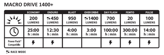 | ■ 最長ランタイム: 300時間(FEMTOモード・20ルーメン) |