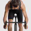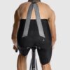 わずか2枚のパネルから形作られるASSOSビブショーツのパッド側。エルゴボックスを直接引き上げるロールバーはお尻へパッドを密着させるXフレームテクノロジーをさらに強化させます!