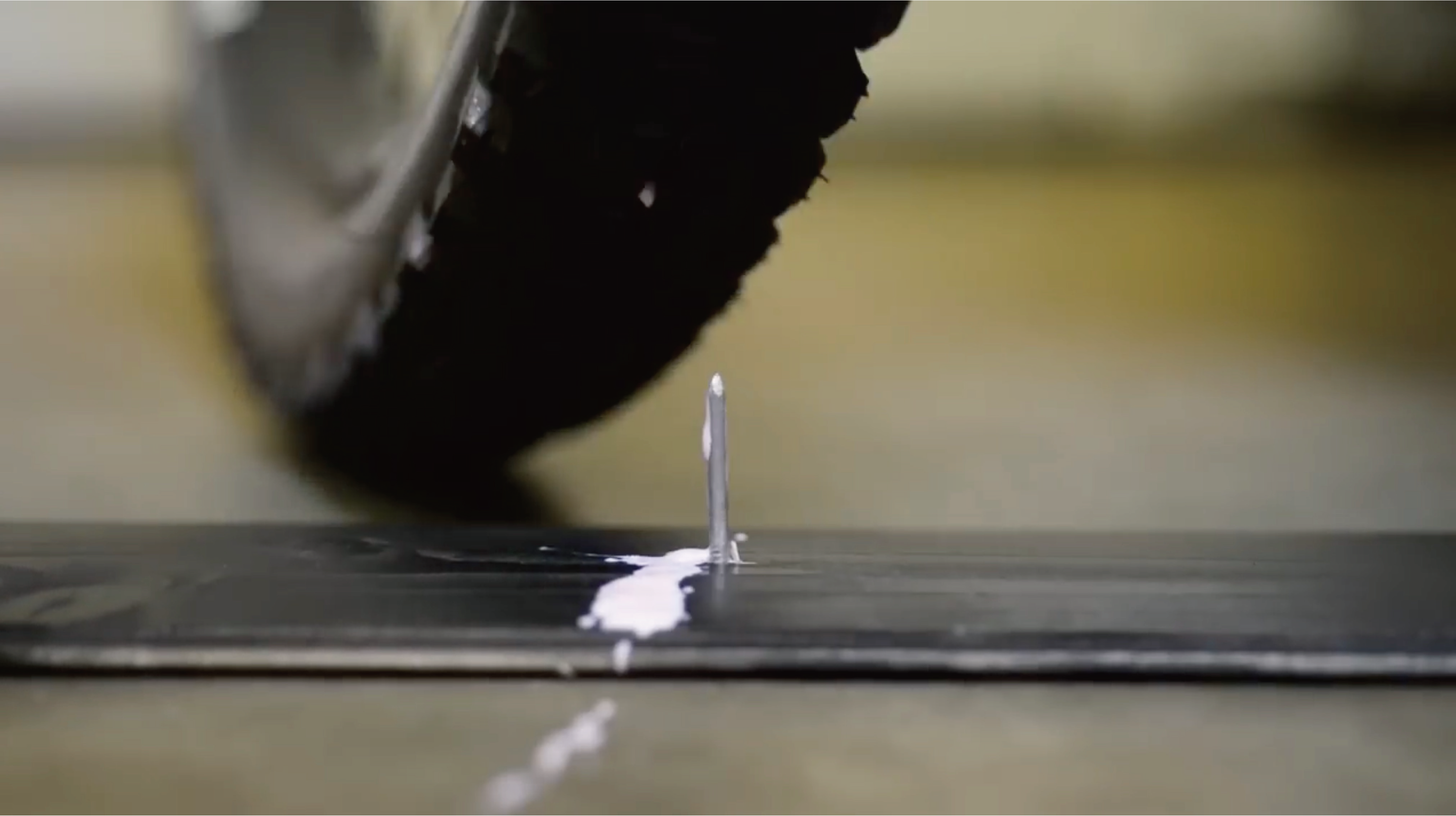 粘度の高いラテックスベースのシーラント液と大小様々な粒子が空いた穴から瞬時に飛び出し穴を塞ぎます。