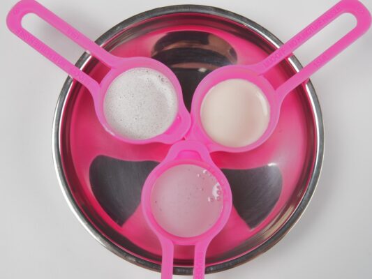 パウチを逆さの状態にして力を入れずに正面目盛りを見ます。