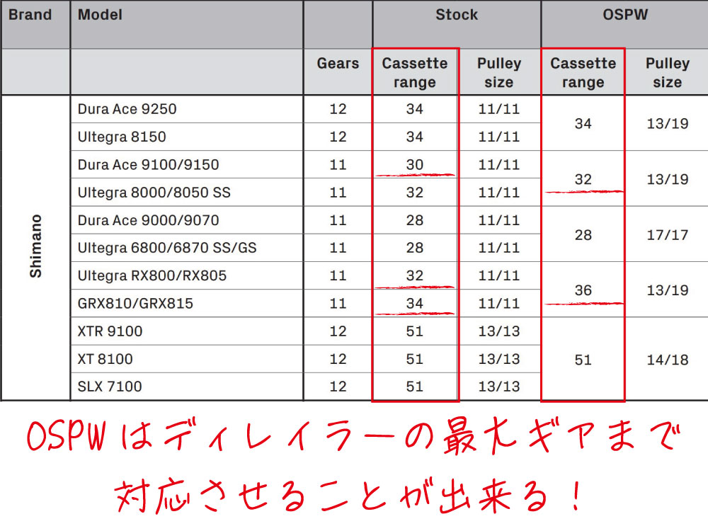 ※9200シリーズ OSPWと9100シリーズ OSPWは類似していますが、スプリングのテンション設定・各ピン等のセッティングが異なる為、9200シリーズOSPWはSHIMANO 9100シリーズには互換性がありませんのでご注意ください。