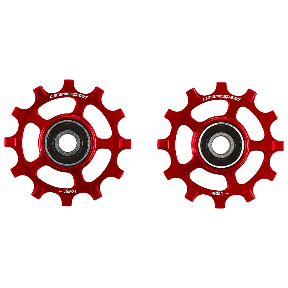 Technical Data■ SRAM RED / FORCE AXS用 ナローワイド12Tプーリーホイール x2 ■ プーリーホイールマテリアル: Aluminium ■ 対応スピード: 12Speed(RED E-1非対応) ■ 合金スペーサーキット / CERAMICSPEED ベアリングオイル(15mlスポイトボトル)/ ステッカーシート