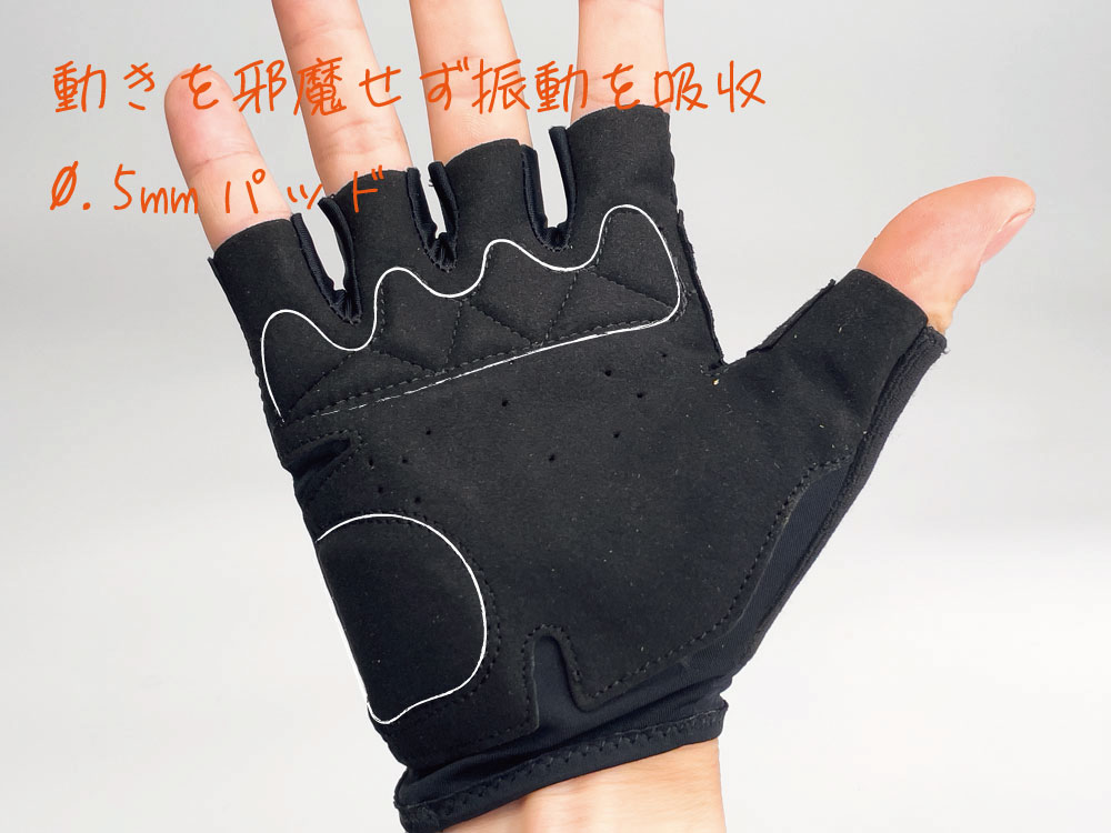 0.5mm厚の手の平には指の付け根と小指下にパッドを配置。