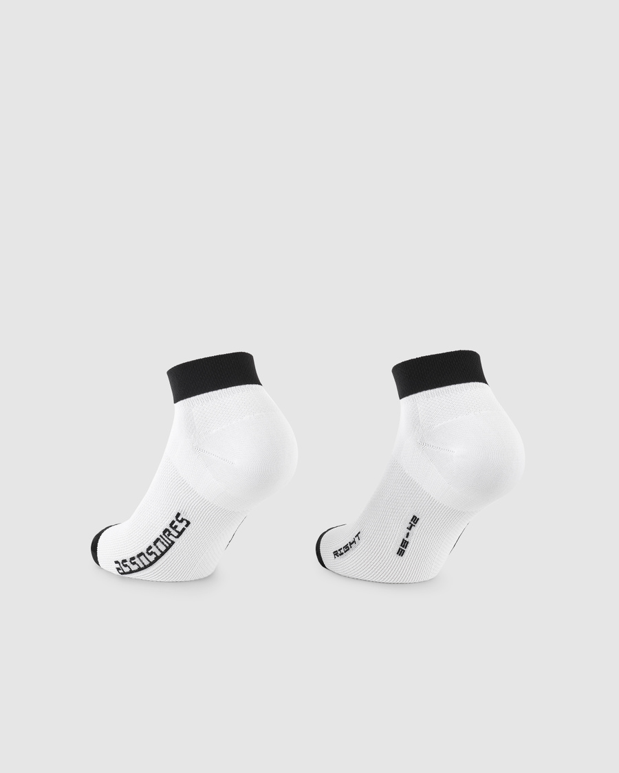 ローライズのSUPERLÉGERは、ASSOSレイヤリングシステムの中で最も軽量で通気性に優れたソックスです。テキスタイルを極細の 240 本の針構造にアップグレードし、比類のない柔らかさと冷却気流を生み出しました。裾は靴の上部に合わせた形状で、ライディング中の足首の動きに対応します。
