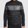 合成断熱材、高い襟、ドロップテールの裾、軽い降雨や路面からの水しぶきを防ぐ DWR 加工が特徴。