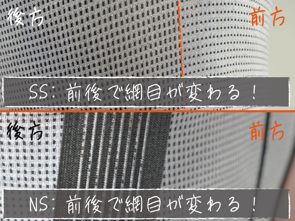 ショートスリーブモデルは前後で網目のサイズが変わり、前は小さく、後ろは大きめの網目になっています。