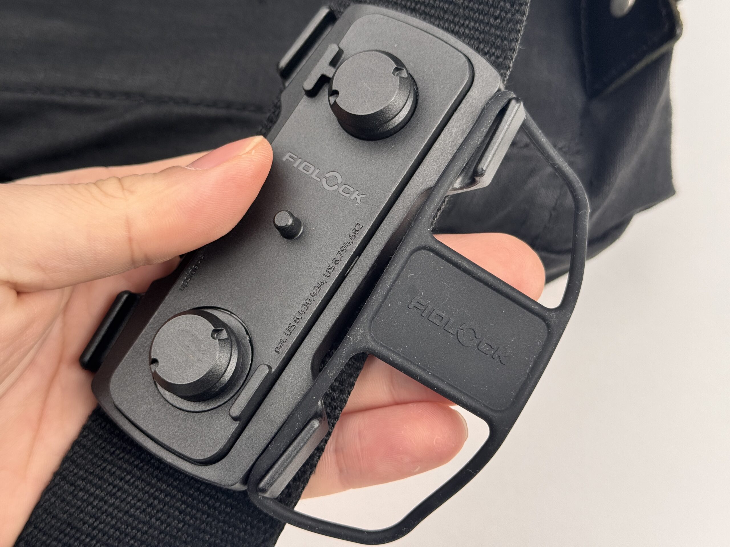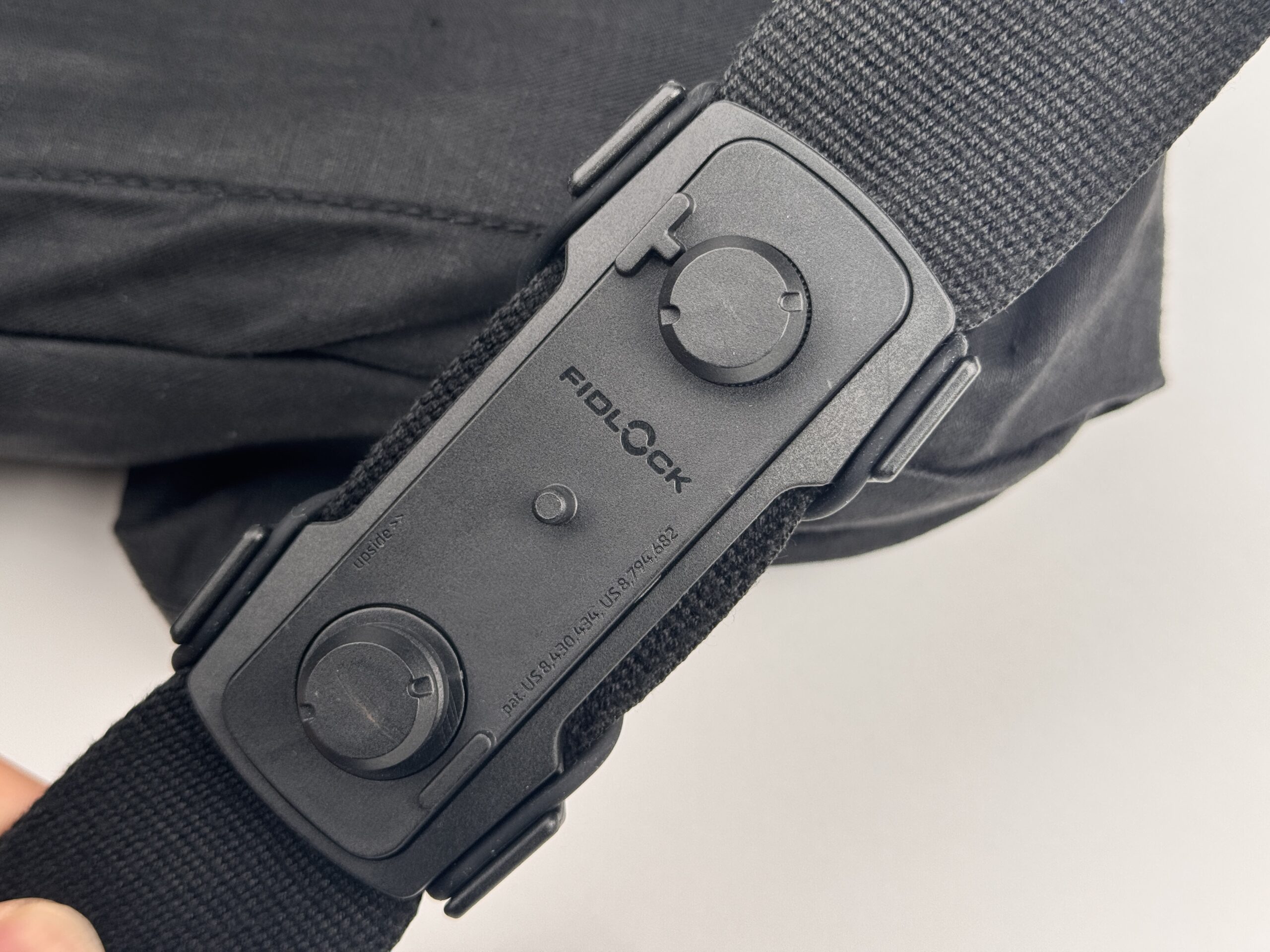 ゴムバンドでしっかりとバックパックのショルダーベルトやチェストストラップに固定できるTWISTベース。