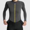 以前のモデルに比べ15%軽量化されながら、保温と通気性のバランスがアップした「スプリングフォールスキンレイヤーP1」は、襟が高くなり首元の保温性が高まりました。以前と同じシームレス構造ですが、生地の表面は密度が濃く保温性が高く、熱のこもりやすい背中や脇周りなどは少し大きいメッシュとなり上がり過ぎた体温を放出します。