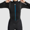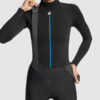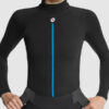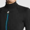 ASSOSのウィンタージャケットと同じ考えで作られた「ウィンタースキンレイヤーP1」は、襟がより高くなり首元の保温性が高まりました。以前と同じシームレス構造ですが、生地の表面は密度が濃く保温性が高く、熱のこもりやすい背中や脇周りなどは少し大きいメッシュとなり上がり過ぎた体温を放出します。