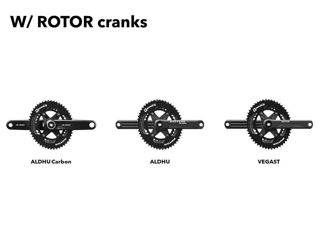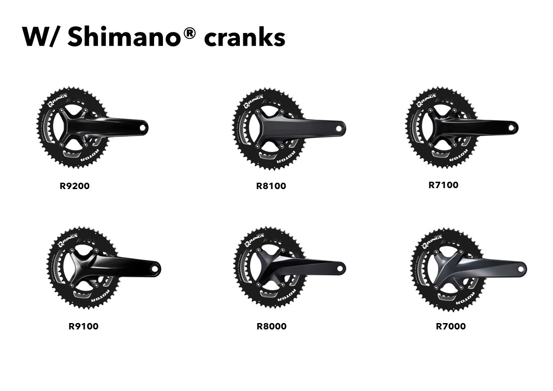 Shimano 2×12 および 2×11 コンポーネントと互換性のあるチェーンリング。また、ROTOR クランクセットと Shimanoクランク、およびそれぞれのパワー メーターとも完全に互換性があります。