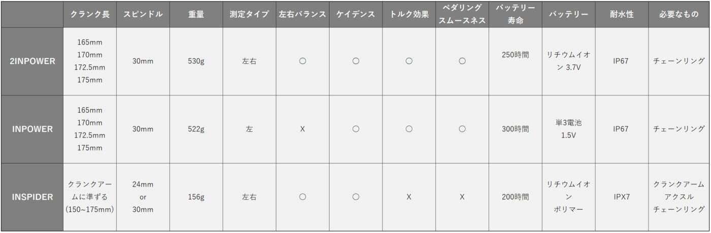 2INPOWER(ツーインパワー)は、左右のクランクのひづみから両側のパワーを測定する充電式モデルです。
