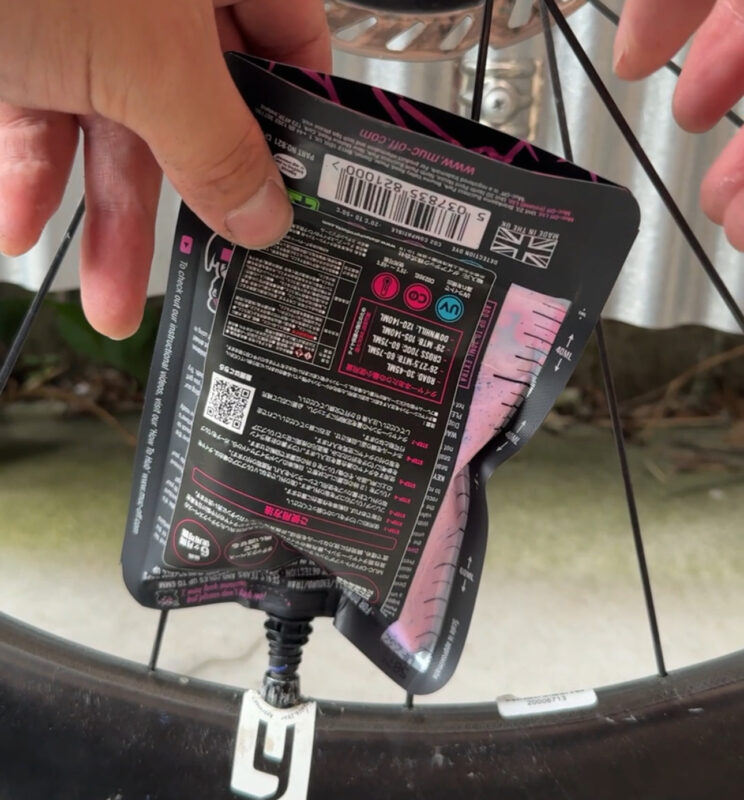 マックオフのシーラントは、タイヤをセットアップした後からシーラントを注入することが可能です。