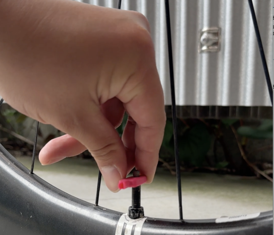 1.タイヤをはめ、バルブコアを外す