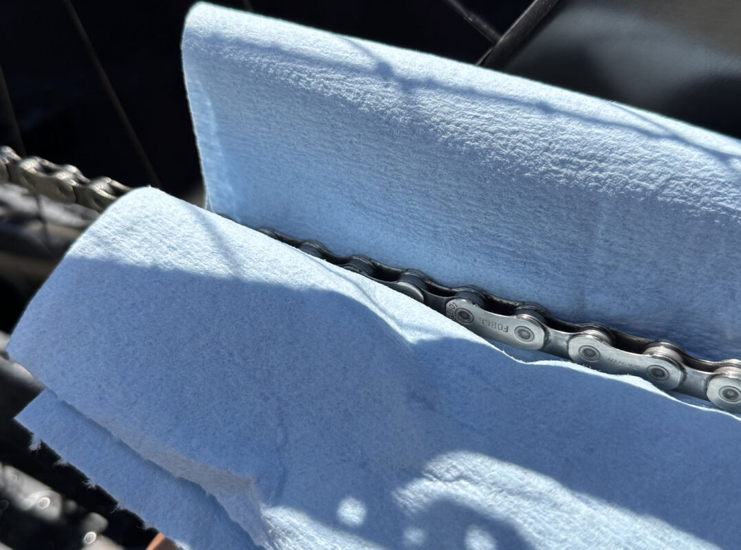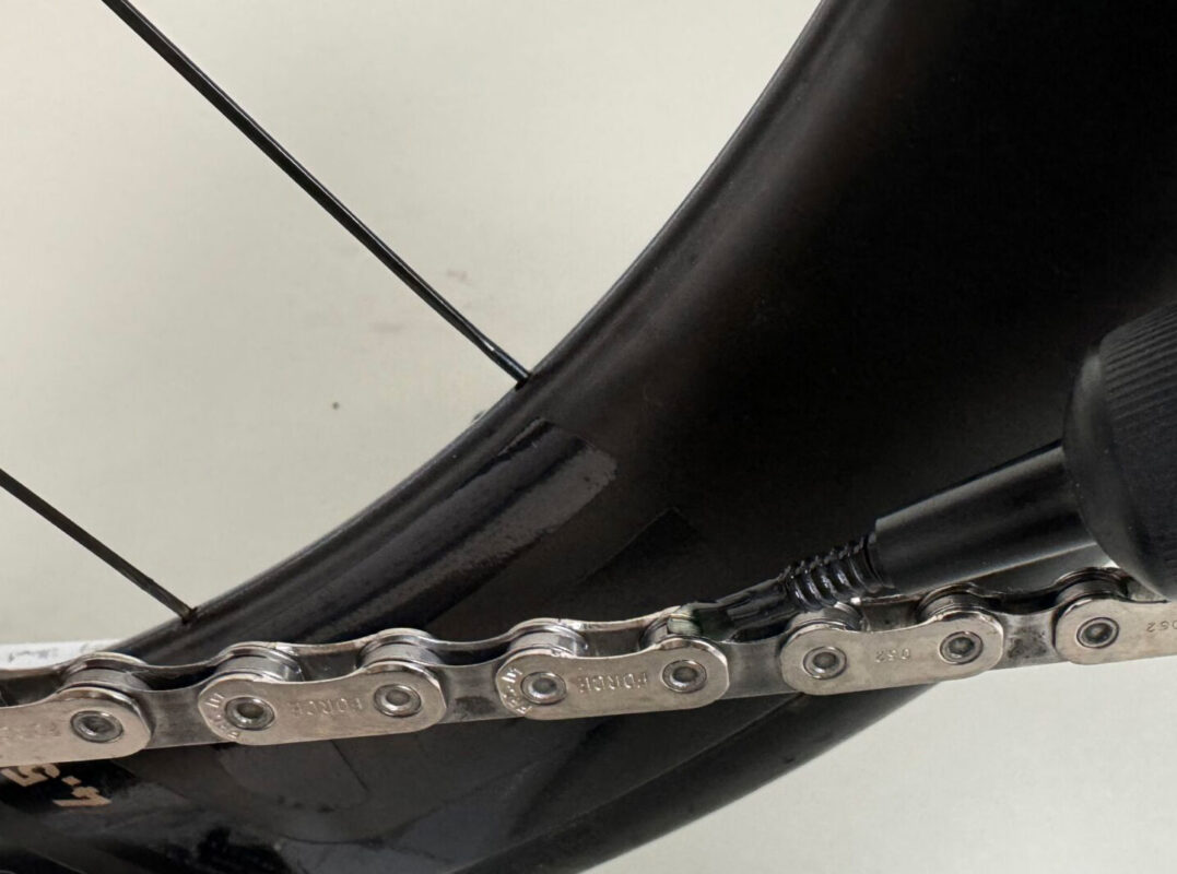 注油後はクランクを回転させ、ローからトップまで変速しながら、 ルブをチェーン全体にしっかり馴染ませます。