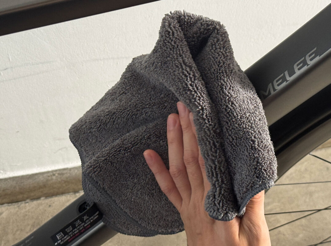 スプレー後に少し放置してマイクロファイバークロスで優しく拭き取ります。