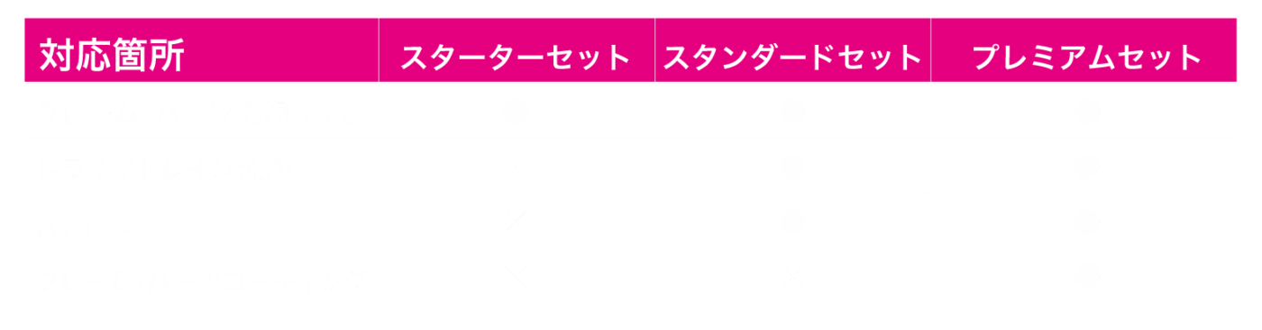 オイルフィルムコーティングで、粘着性の無いサラサラとした保護膜を形成し、腐食を防止します。汚れ付着を防ぎ、次の洗車がしやすくなる効果があります。
